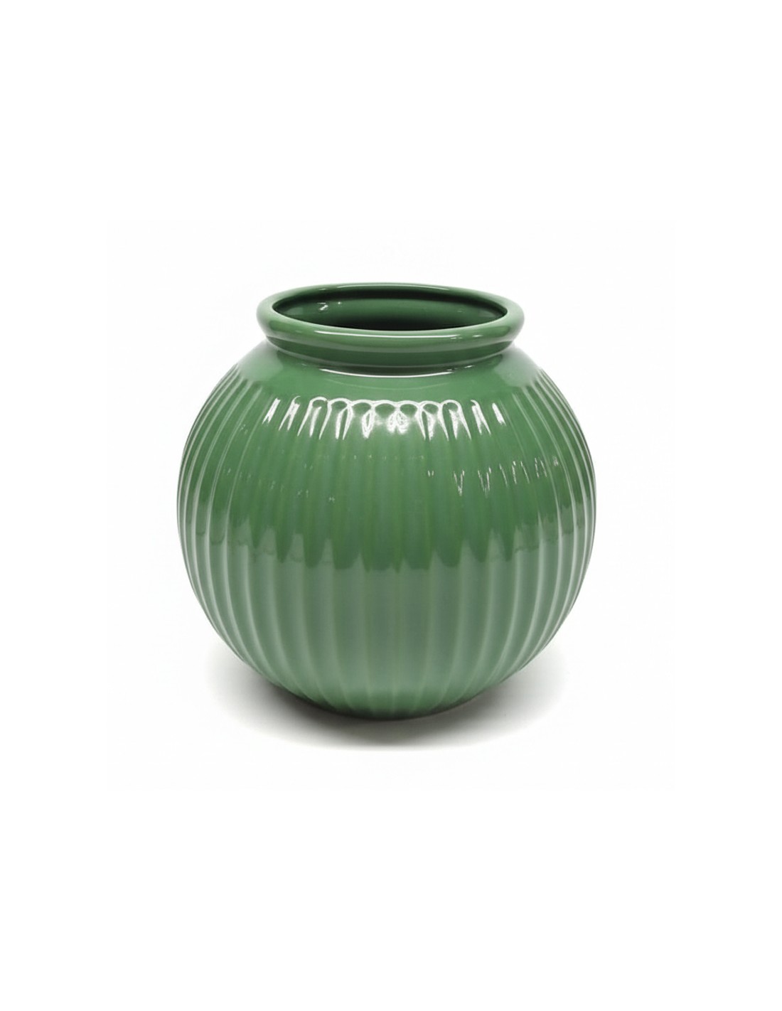 DECO / CÓDIGO: 73739 (+500-36)(R. 76) / FLORERO VERDE REDONDO / MEDIDA 19x19x9 cm / Más IVA